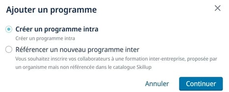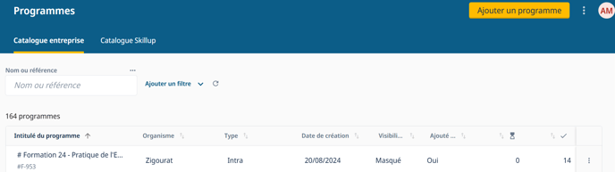 💡 Note: The action button "+ Create a program from the catalog" at the top of the page allows you to use the content of a program from our partner organizations. You can customize the different content elements if needed.