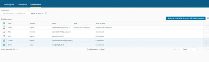 You can assign a job description to several team members simultaneously by selecting the rows of the corresponding team members.
