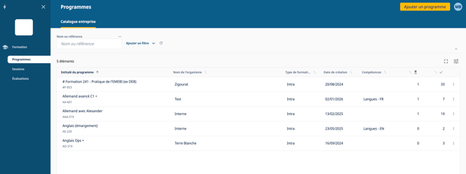 Un programme regroupe les informations générales d'une formation (objectifs, contenu, modalités).