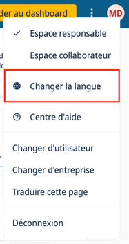 - Si un collaborateur ou un manager change cette langue par défaut, ce choix est gardé en mémoire, et l'utilisateur retrouvera son interface dans cette même langue lors de sa prochaine connexion.