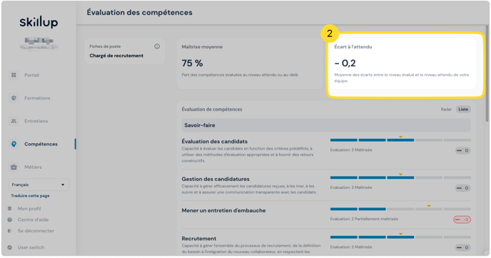 ⚠️ Cet indicateur apparaît uniquement si des niveaux attendus existent pour votre poste.