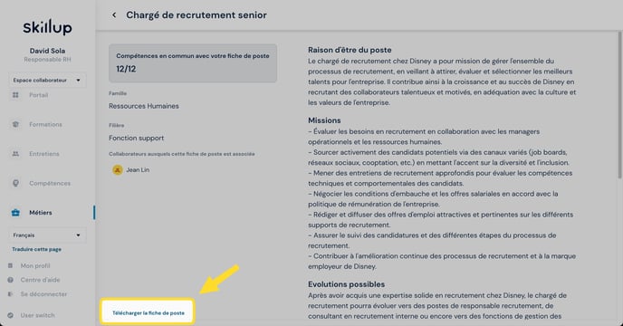 Sur chaque fiche de poste, vous pouvez cliquer sur le bouton ou l’icône de téléchargement pour exporter la fiche en PDF.