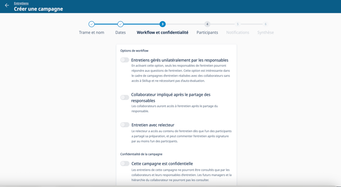 Définition des différents types de workflow d'une campagne et confidentialité d'une campagne